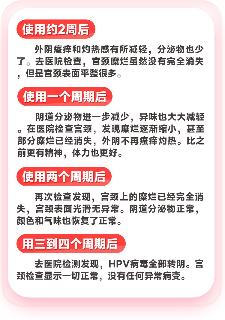 加速受损组织的修复和再生,恢复宫颈上皮的正常结构和功能,加强外部防护防止病症再来,最终实现转阴康复。